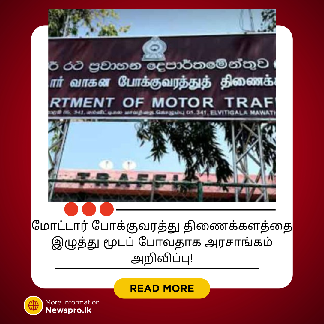 எதிர்வரும் உள்ளூராட்சி தேர்தலை முன்னிட்டு, இலங்கை மோட்டார் போக்குவரத்து திணைக்களம் (DMT) 2025 மே 5 மற்றும் 6 ஆகிய இரு நாட்களுக்கு மூடப்படும் என அதிகாரப்பூர்வமாக அறிவிக்கப்பட்டுள்ளது.