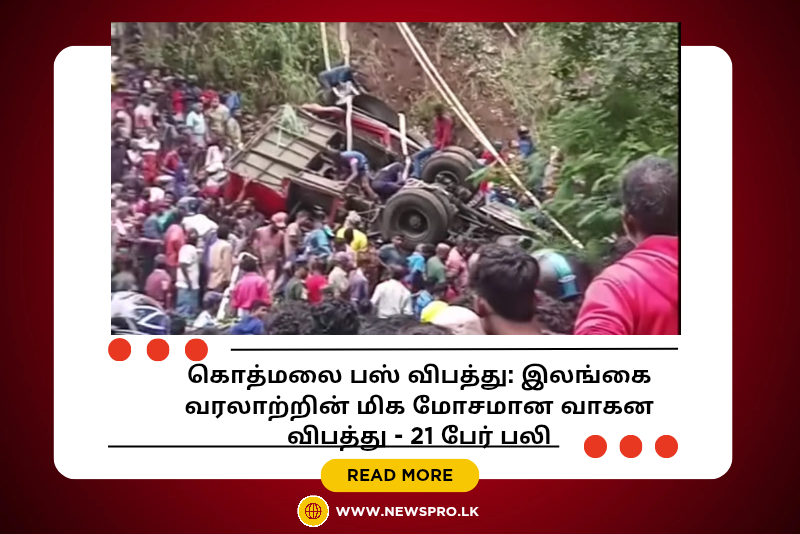 இலங்கையின் கொத்மலை மலைப்பகுதியில் இன்று காலை ஏற்பட்ட கடும் பஸ் விபத்தில் குறைந்தது 21 பேர் உயிரிழந்தனர். பலர் ஆபத்தான நிலையில் சிகிச்சை பெற்று வருகின்றனர். நாட்டின் வரலாற்றில் வாகன விபத்துகளில் மிக அதிக உயிரிழப்பை ஏற்படுத்திய சம்பவங்களில் இதுவும் ஒன்றாக அடையாளப்படுத்தப்பட்டுள்ளது.